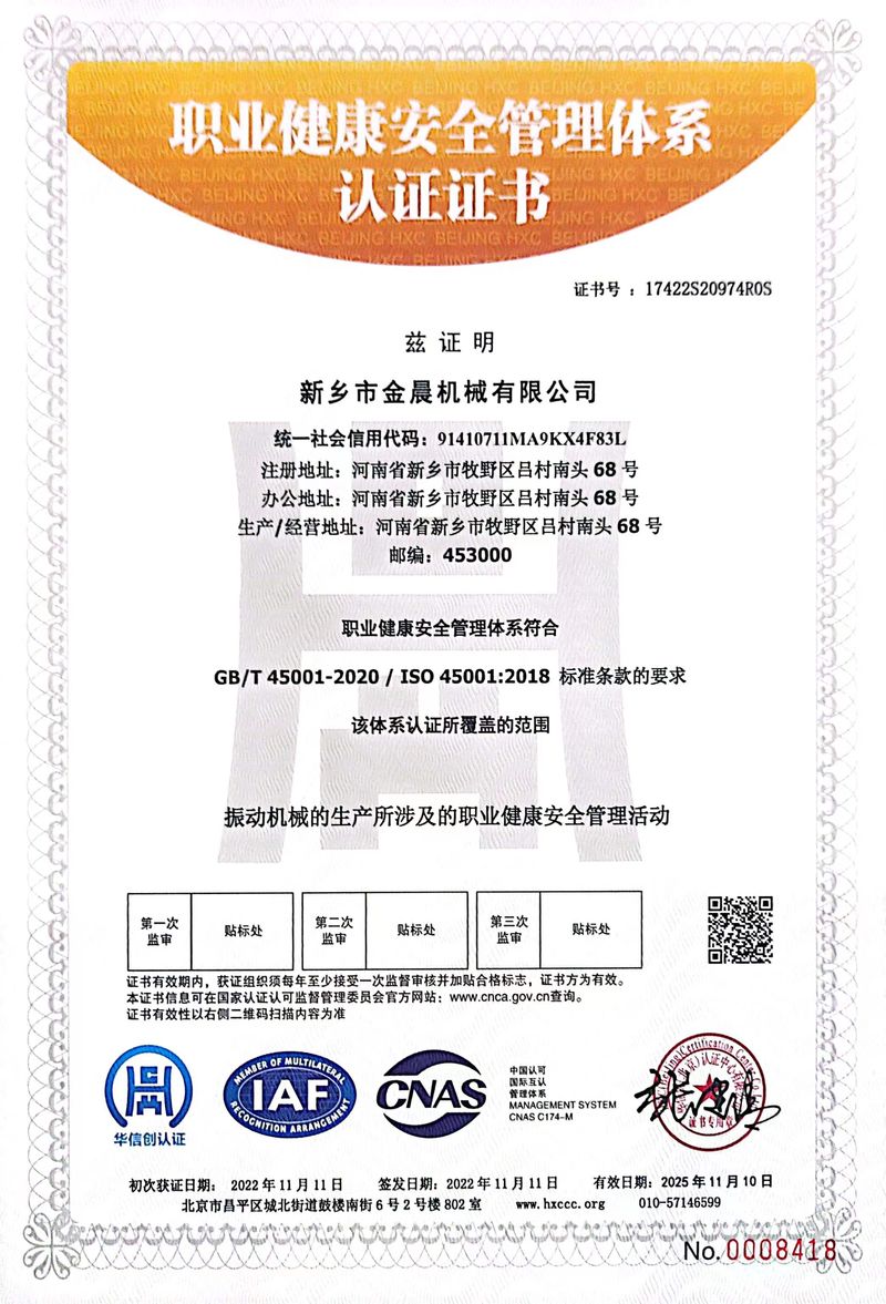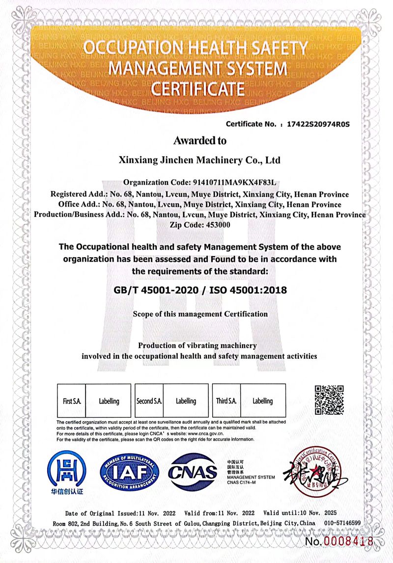 職業(yè)健康安全管理體系認(rèn)證證書(英文版)