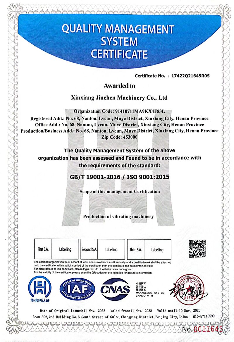 質(zhì)量管理體系認(rèn)證證書(英文版)