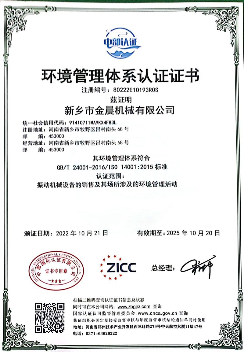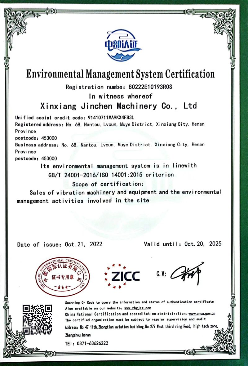 環(huán)境管理體系認(rèn)證證書(英文版)
